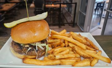 Grilled beyond beef patty, smoked cheddar, lettuce, tomato, guacamole, red onion, and mayo on a brioche bun. Served with your choice of side.
