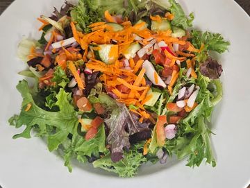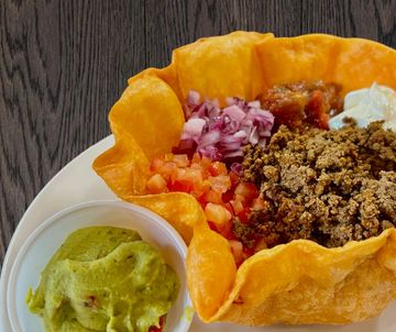 Crisp lettuce topped with taco beef, tomato, onion, and a shredded cheese blend. Served in a deep fried tortilla bowl, topped with salsa and sour cream.