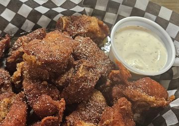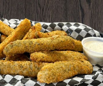 Breaded pickles served with a side of house made buttermilk ranch dip.