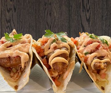 Choice of beef, chicken, beer battered cod. Folded into a flour tortilla with red coleslaw for cod or lettuce and cheese for chicken and beef. Topped with pico and chipotle mayo.
